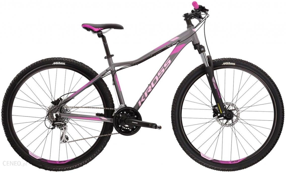 KROSS LEA 5.0 SR Każda z nas chce czasem kupić sobie coś ładnego, a jednocześnie praktycznego. Dlatego też powstał KROSS Lea 5.0 SR – połączenie roweru praktycznego, który sprawdzi się zarówno w mieście jak i w lekkim terenie. Rower stworzony dla nas, kobiet – z uwzględnieniem naszych potrzeb i dostosowany pod kątem naszej fizjonomii. Kiedy chcesz uciec od tego całego zgiełku po prostu wsiądź na rower. KROSS Lea 5.0 w 2022 roku to kontynuacja myśli przyświecającej nam przy projektowaniu poprzednich generacji tego roweru. To nie tylko nowy lakier położony na ramie – poprawiliśmy wiele drobnych detali, które przekładają się na przyjemność oraz komfort płynące z jazdy. Osprzęt KROSS Lea 5.0 SR to sprawdzony osprzęt od uznanych producentów. Za przyjemną oraz szybką zmianę przełożeń odpowiedzialna jest tylna oraz przednia przerzutka Sunrace obsługująca. Dzięki trzyrzędowej korbie oraz ośmiobiegowej kasecie udało nam się wyposażyć rower w 24 przełożenia, które przydadzą się w każdym terenie, w który postanowisz zabrać rower. KROSS Lea 5.0 SR oferuje także możliwość wyboru kół dostosowanych do Twojego wzrostu. Niezależnie jednak od tego czy wybierzesz 26 czy 27,5 calowe koła rower będzie zwinny oraz zwrotny w każdych warunkach. Koło wyposażone zostały w opony Mitas Ocelot V85 o szerokości 2,1”. Dzięki amortyzowanemu widelcowi SR Suntour XCE 28 o skoku 80 milmetrów jazda po nierównościach oraz pokonywanie krawężników nie będzie stanowić już żadnych problemów. Ponadto rower wyposażony jest w hydrauliczne hamulce tarczowe JAK-Y1. Wygoda eksploatacji oraz wysoka siła hamowania to dwie najważniejsze cechy tego rozwiązania. Dopasowanie to podstawa Rama KROSS Lea 5.0 SR została wykonana z aluminium performance. Jest to specjalny stop aluminium performance 6061, dzięki czemu rower jest sztywny i odporny na złamania. Jednocześnie, jest to stosunkowo lekki materiał, który może zaskoczyć niejedną rowerzystkę swoimi właściwościami. ROSS Lea 5.0 SR to rower MTB przeznaczony do lekkiego terenu. Została w niej zastosowana dostosowana dla kobiet geometria, która ułatwia wsiadanie oraz zsiadanie z roweru, a także jest dostosowana do osób o drobniejszej budowie. Rama jest malowana proszkowo, co przekłada się na trwałość malowania oraz jego odporność na uszkodzenia mechaniczne (Otwórz w nowym oknie )